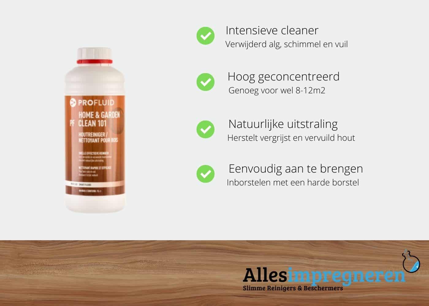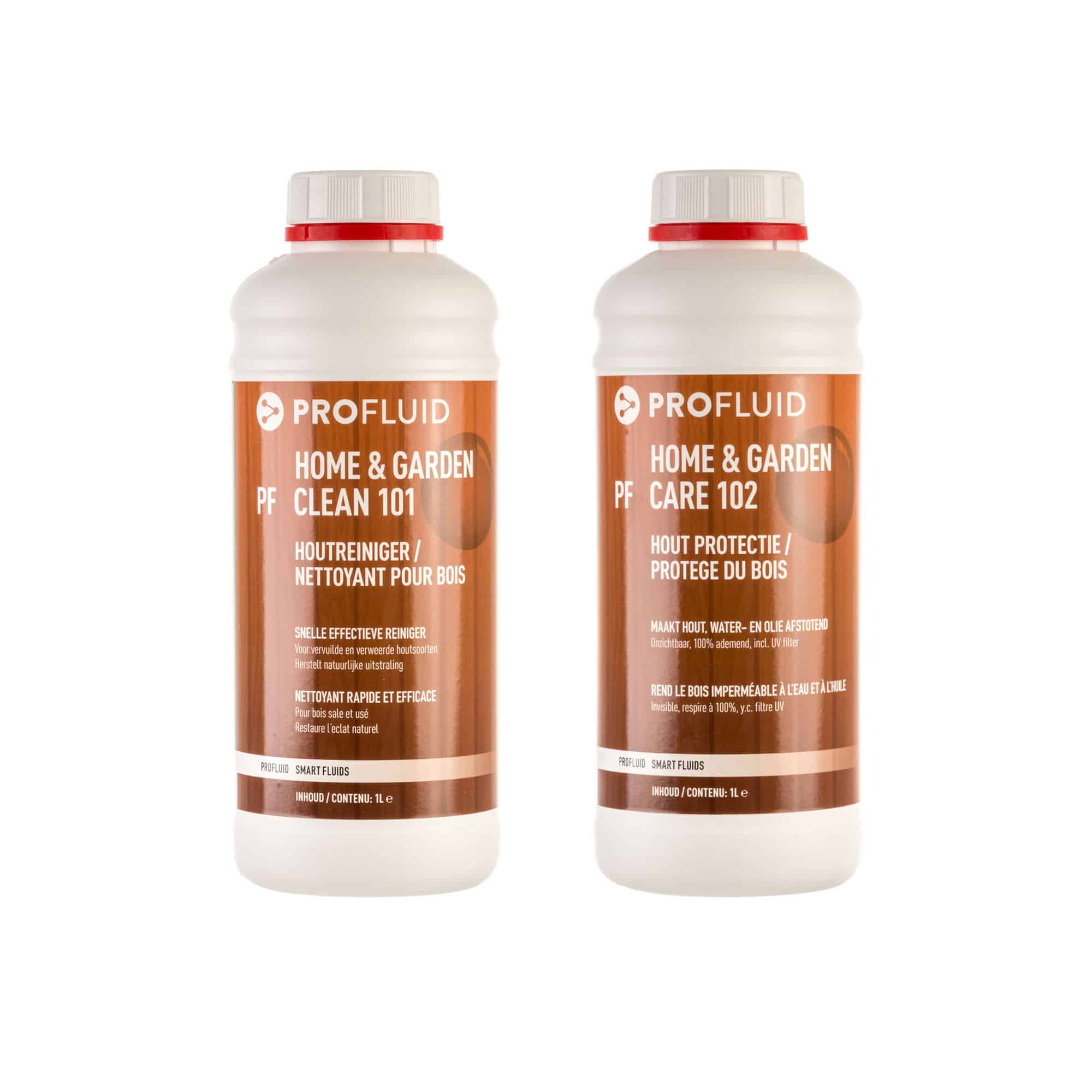 Koop eenvoudig het complete stappenplan waarmee hout en steen binnen no-time weer helemaal als nieuw is. Door eerst te reinigen met de Clean 101 en vervolgens te beschermen met de Care 102 gaan hout en steen weer jaren mee.